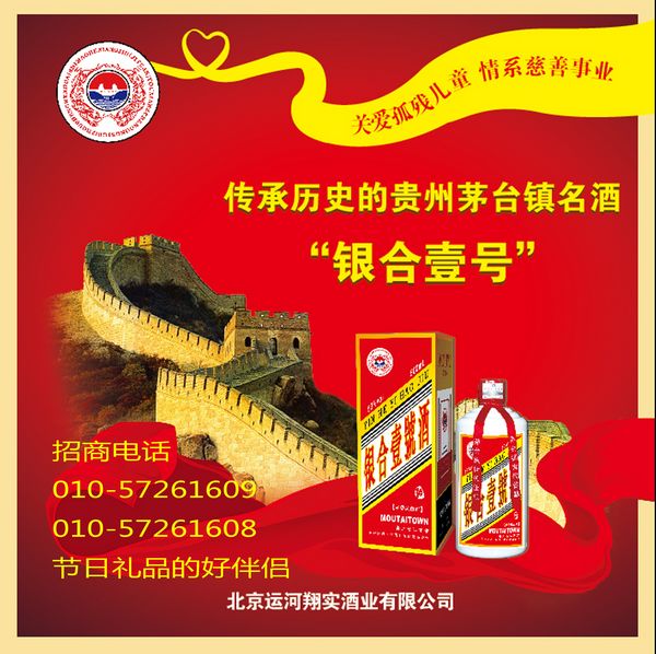与此同时,公司的主营业务是销售主要依托民族品牌的国酒茅台的前身茅合集团的酿酒银合壹号酒等高档酒品,以专供、批发、团购等为主,为全国各族人民、国家机关,企事业单位、军队、院校以及国有公司、民营企业等单位采购提供最优质的酒质,同时也为全国最具民族价值的酒类品牌提供网络推广和宣传。并且, “银合壹号”依靠其正宗酱香的品质,成为全国第一家也是唯一一家与民政部社会工作协会孤残儿童救助基金会合作的白酒。“饮用银合壹号酒,我们会代表您向全国的孤残儿童传递一份爱心,将酒款的一部分捐献给孤残儿童。”“银合壹号”也是全国第一家凭借其纯正酱香的品质成功进入中南海的由民营经营的纯正酱香型白酒。